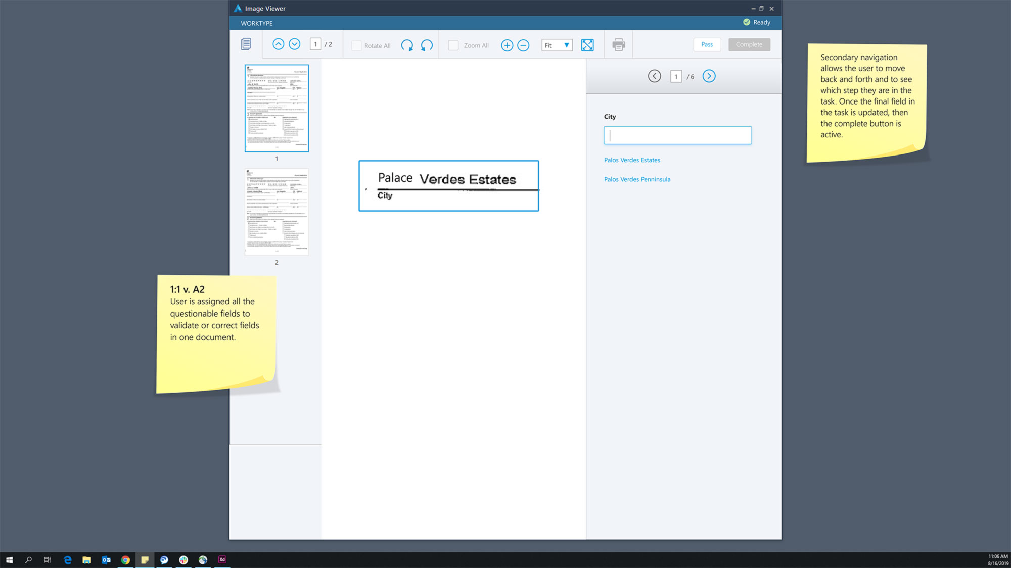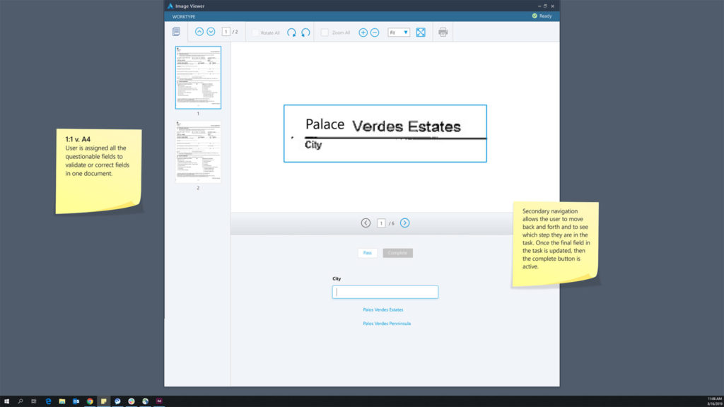 There were two primary use cases to solve for – user interactions via telephone and interactions with documents. Capital started with improving the UX and building functionality for telephone before moving on to documents in early 2019, when I came on board. Current state documentation processing did not allow for any digitization — all forms were printed, mailed in, scanned, then reviewed by a user to manually enter all information contained on the form into a series of applications and databases. Moving from a manual process to more of an automated process was an opportunity for the business to gain not only a better interface, but a reduction in errors, reduce the time to complete tasks, and the ability to utilize a team of lower skilled processors to remediate common errors.