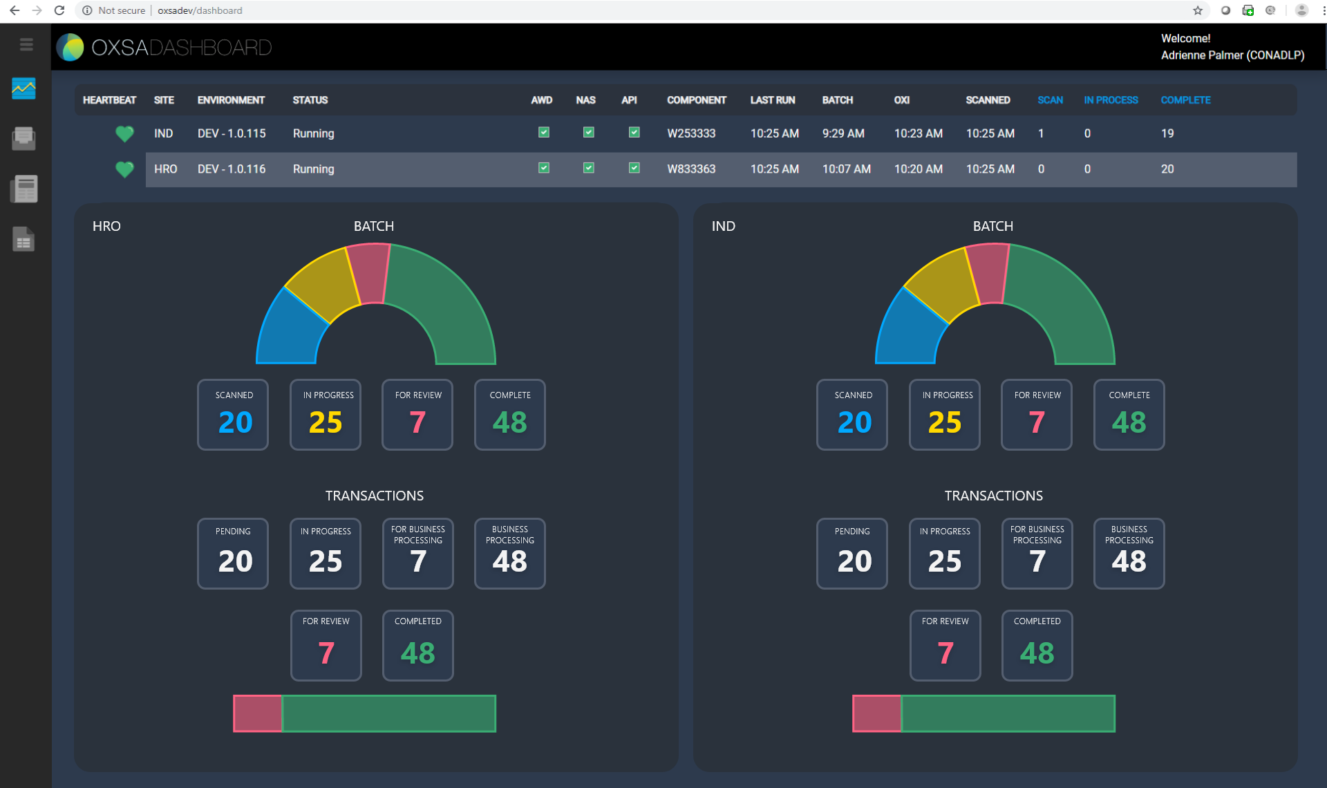 Designed a dashboard for the mail scanning operations team (below). Dashboard design allows for observability as incoming mail is scanned and processed. Used both as a desktop application and projected on a large screen in the mailrooms, managers and associates can view progress and issues in real time. I also designed a custom logo to add a little polish to the user interface.