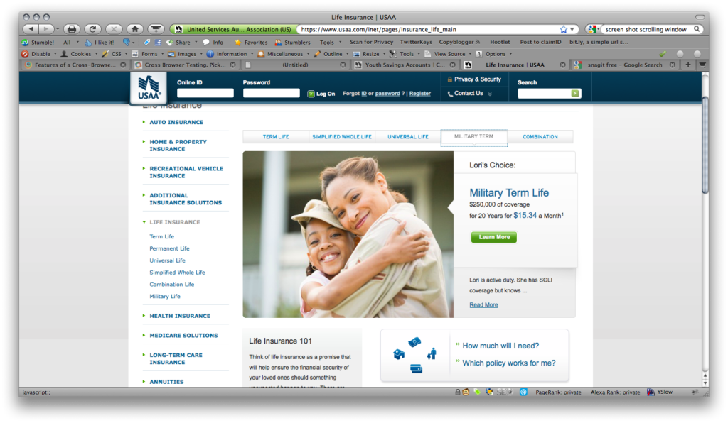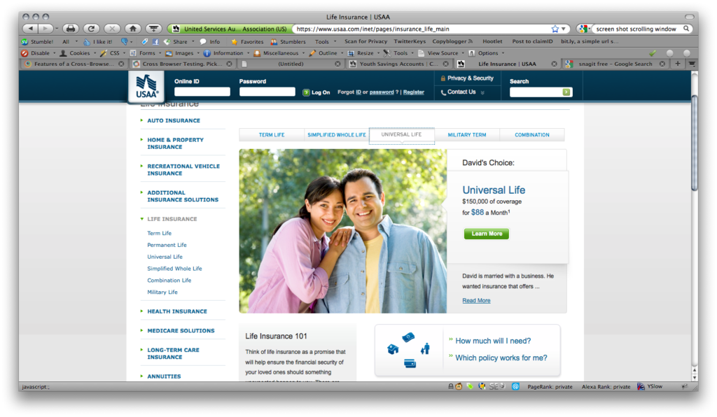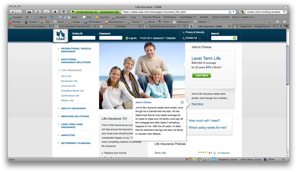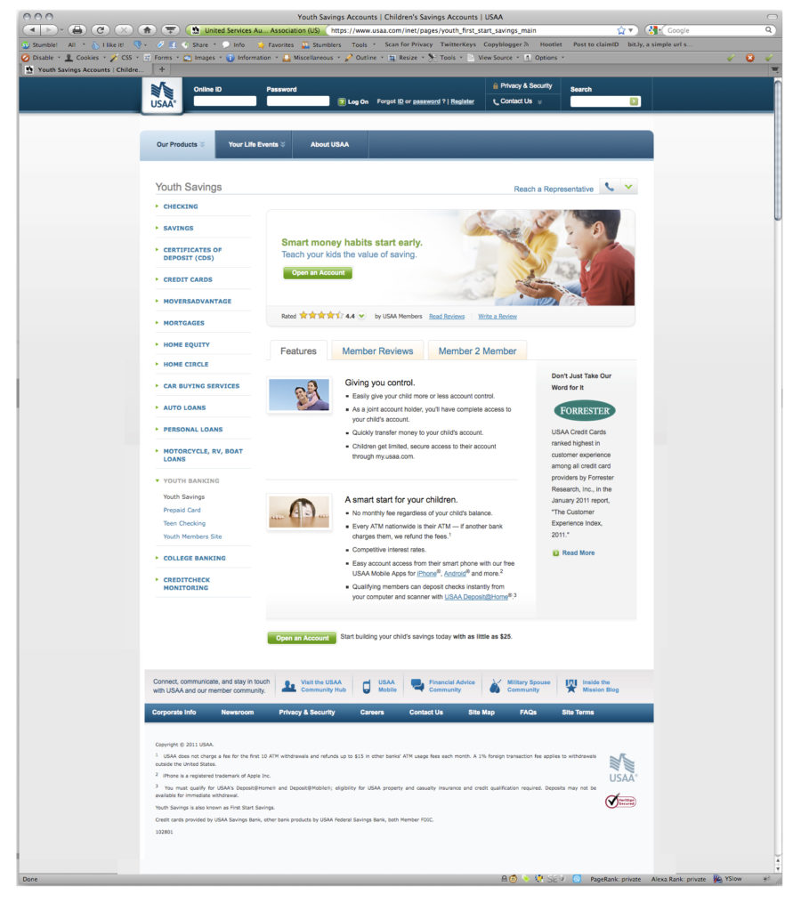 While working at USAA I was on the Design Governance team, tasked with UI and UX design and ensuring that all agency and vendor work complied with USAA’s brand guidelines and pattern library. I worked mostly for the Banking and the Life Insurance business units on public facing marketing pages.